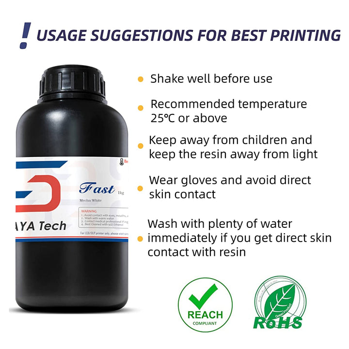 Das Resin ist mit einer Vielzahl gängiger LCD- und DLP-3D-Drucker kompatibel und bietet eine hohe Auflösung bei gleichzeitig schneller Verarbeitung.