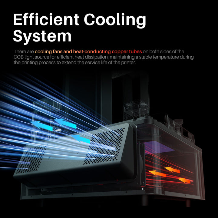 Медни тръби и вентилатори осигуряват температурна стабилност и дълъг живот на принтера. -